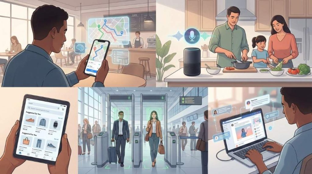 • It’s Embedded in Daily Routines: From voice assistants and traffic apps to spam filters and fraud detection, AI works invisibly in the background of common tools.